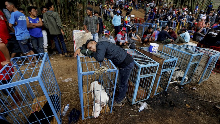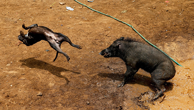В Индонезии прошел ежегодный турнир "Абу Багонг", известный своими жестокими схватками собак с дикими кабанами, сообщает телеканал "Мир-24".