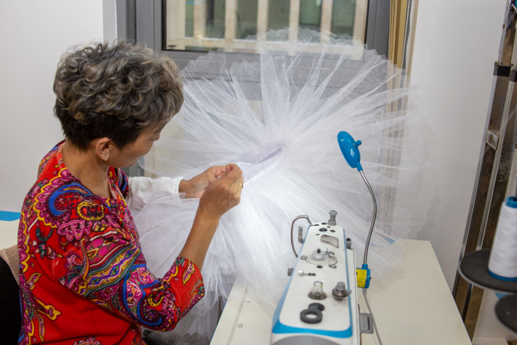 По словам мастеров пошивочного цеха, на изготовление одной балетной пачки из десяти слоев может уйти от 14 до 16 метров специальной ткани – жесткого тюля. Мужчин же по всем канонам классического балета оденут в балетные трико и колеты.