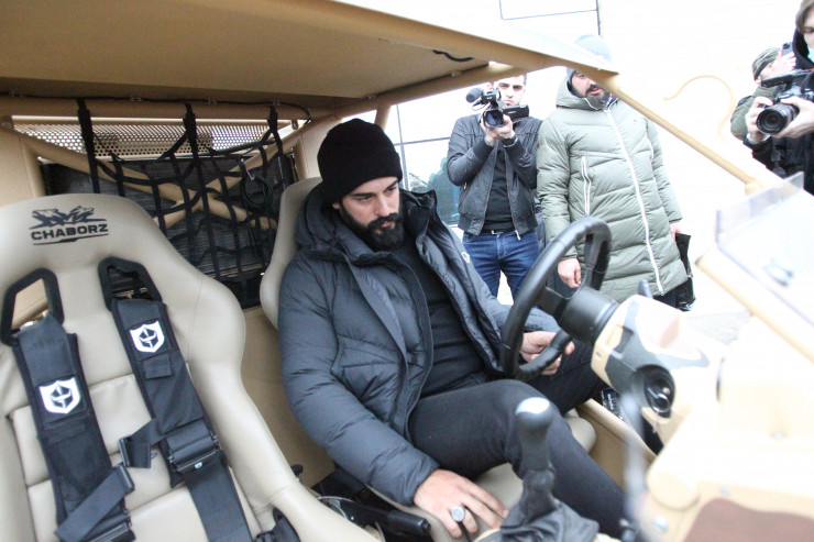 В ходе посещения университета в Гудермесе звезды турецких сериалов покатались на багги, испытали аэродинамичесую трубу, постреляли из огнестрельного оружия.