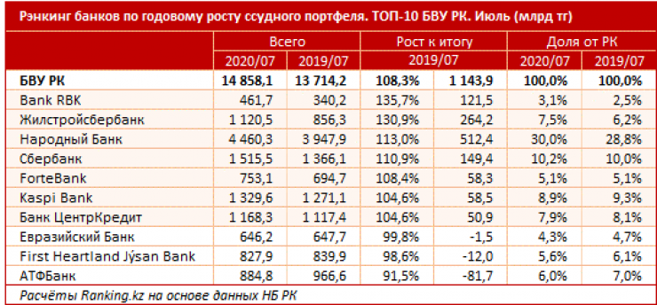 Замыкает тройку лидеров по годовому росту ссудного портфеля Народный Банк: плюс 13 процентов, до 4,5 триллиона тенге. В денежном выражении рост составил 512,4 миллиарда тенге.