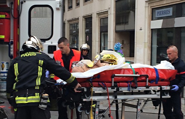 Покинув здание, вооруженные мужчины столкнулись с полицейской машиной. Последовала перестрелка, во время которой один из стражей порядка был ранен. К нему подбежал один из террористов и добил лежащего человека выстрелом в голову. Это видно на видео, которое снимали некоторые журналисты, укрывшиеся на крыше.