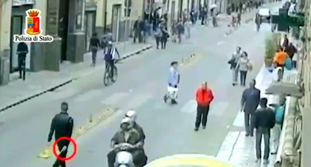 Один из членов мафии Эмануэль Рубино перед атакой на гражданина Гамбии. © Polizia di Pelermo