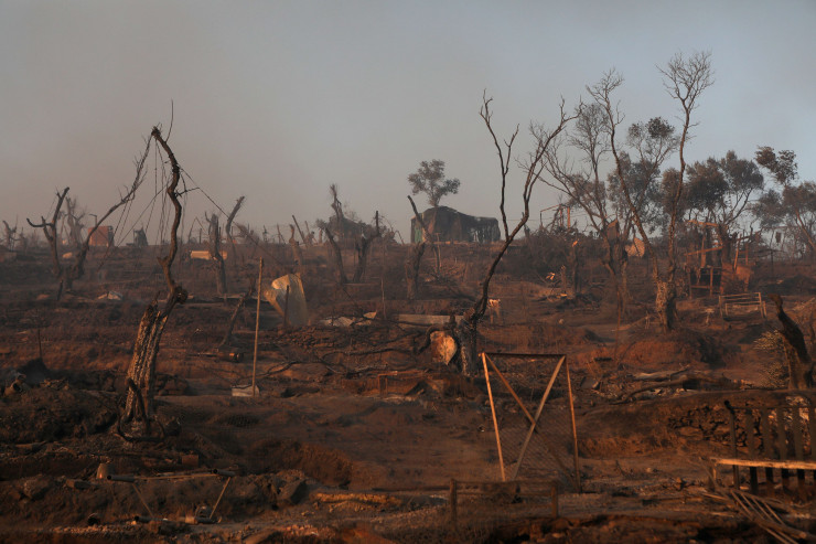 Absolute destruction at #Moria camp visible with the first ray of light this morning. Approx 12,000 people will have nowhere to sleep tonight, not even the frail tents they used to call home.