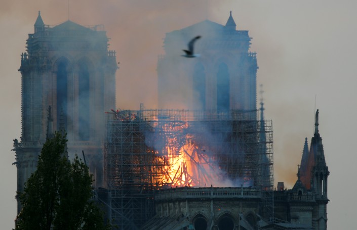 Крыша горящего собора Парижской Богоматери обрушилась REUTERS/Benoit Tessier©