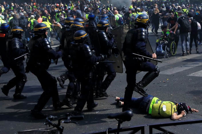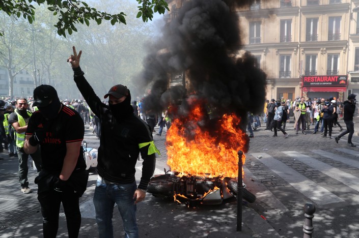 По данным издания, протестующие закидывают правоохранителей всем, что попадается под руку, в ход пошли самокаты и кирпичи. Таким образом люди провоцируют полицию. В частности, средства передвижения полетели в полицейских в 800 метрах от площади Бастилии.