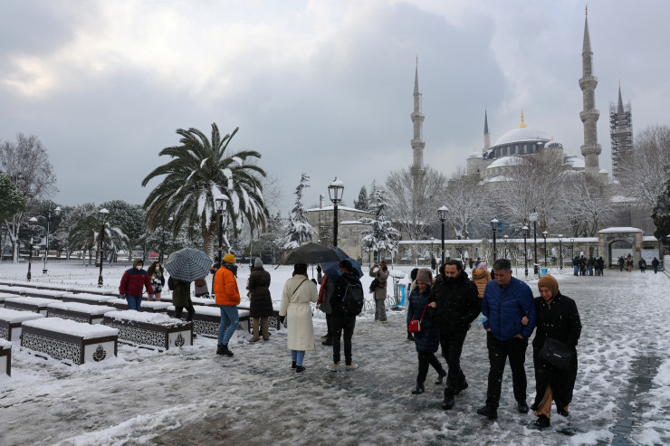 Губернатор Стамбула Али Ерликая сообщил в Twitter, что из-за снегопада в городе с населением около 16 миллионов человек сократили рабочие часы в государственных учреждениях, а также в торговых центрах.