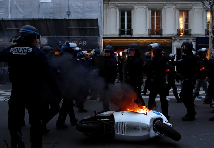 В субботу днем протестующие собрались у здания парижской мэрии, затем прошли шествием к музею Орсэ, где начались столкновения демонстрантов с полицией. Протестующие, большинство из которых молодые люди, забрасывали камнями полицейских. Правоохранительные органы неоднократно применяли слезоточивый газ.
