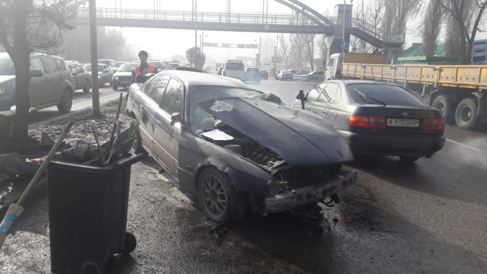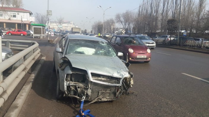 Еще одно серьезное ДТП произошло позднее, днем 16 февраля по Саина, не доезжая проспекта Рыскулова. Как рассказали очевидцы, водитель BMW, двигаясь в северном направлении, не справился с управлением и снес металлическое ограждение. Далее он вылетел на полосу встречного движения и столкнулся с Audi.