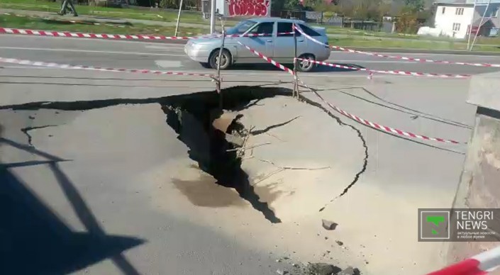 4-метровая яма образовалась в результате обвала асфальта на улице Саина в Алматы