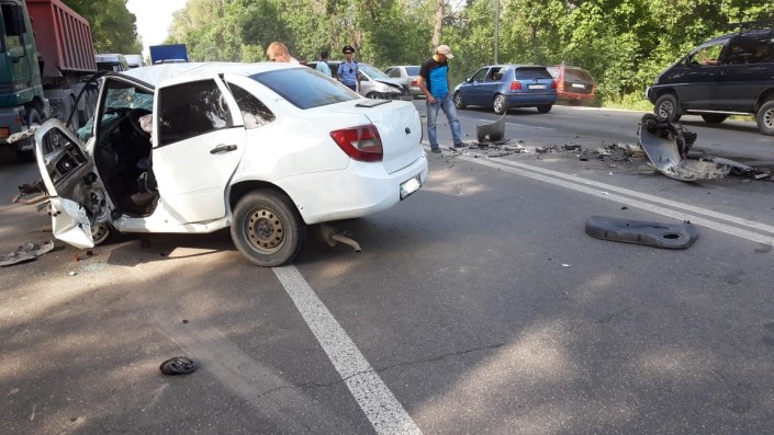 Сообщается, что от мощного удара у LADA Granta оторвало двигатель. После столкновения Toyota откинуло на автомашину Mazda, ехавшую в том же направлении.