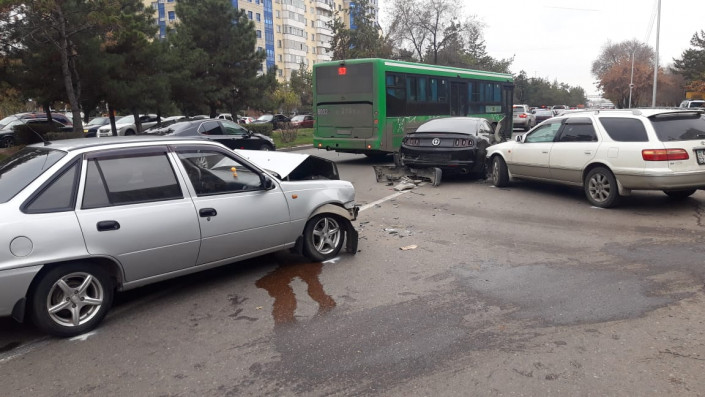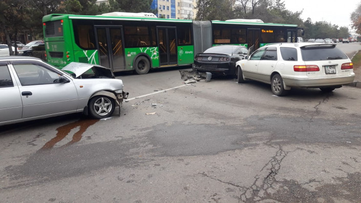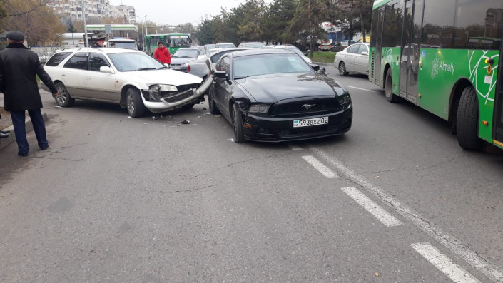 Со слов очевидцев, Ford Mustang и Daewoo Nexia двигались в западном направлении по Толе би. Проехав улицу Момышулы, Mustang остановился, а водитель Nexia не успел среагировать и на полном ходу ударил в заднюю часть Mustang.