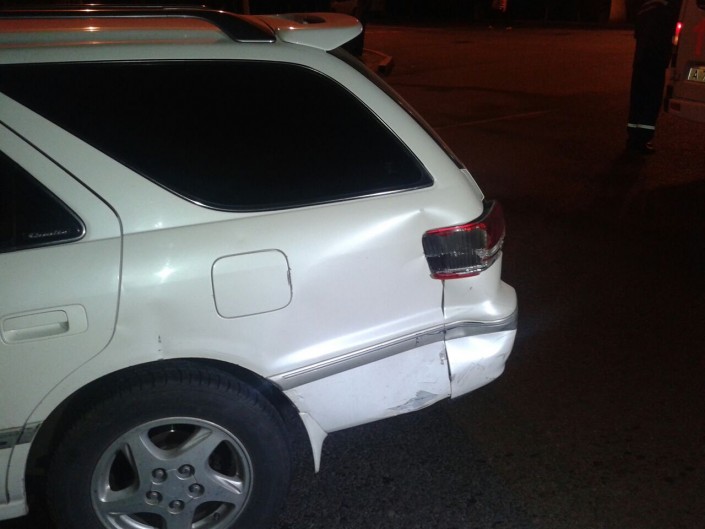 В этот момент по Масанчи на север двигался Mercedes-Benz, который на скорости он въехал в Toyota. От удара Toyota отбросило, а водитель Mercedes от испуга вильнул рулем влево и врезался в дерево.