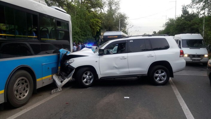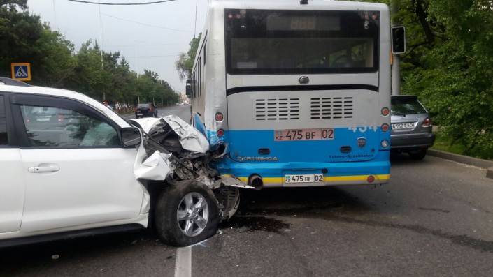 ДТП произошло по проспекту Абая в западном направлении, около пересечения с улицей Саина. Со слов водителя Toyota Land Cruiser, когда он двигался в западном направлении, перед автомобилем резко остановилось транспортное средство, двигавшееся впереди. Во избежание удара водитель допустил столкновение с находившимся рядом автобусом.