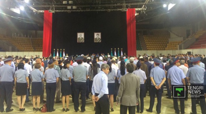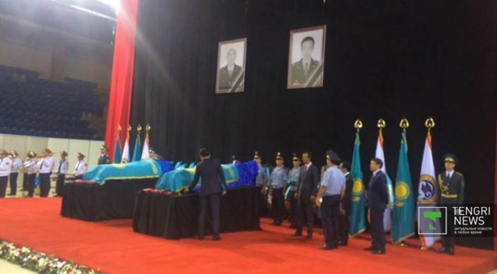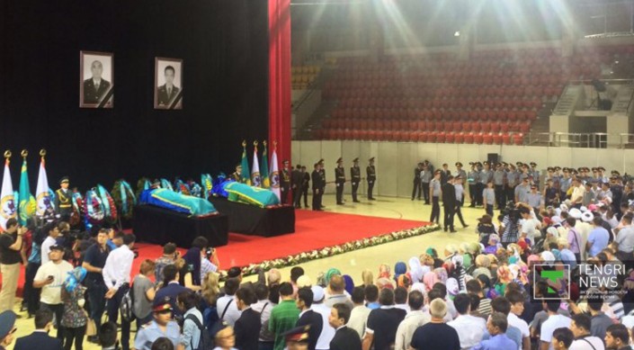 Церемония прощания с полицейским УССО МВД РК 42-летним Аяном Галиевым и подполковником полиции в отставке Гани Нуримановым проходит во Дворце спорта имени Балуана Шолака с 9 утра. После прощания состоится поминальный обед.