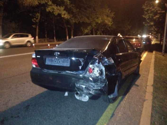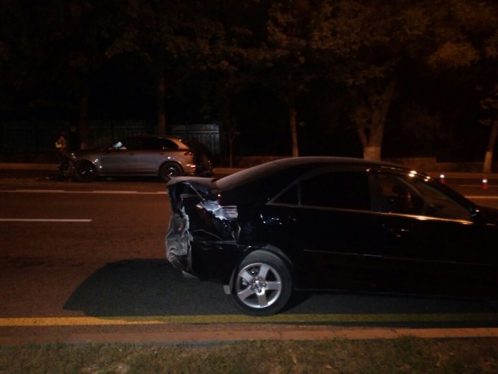 Водитель автомобиля Porsche Cayenne, не успев среагировать, ударил Toyota Camry, которая в этот момент пыталась то ли повернуть, то ли развернуться. От удара японскую иномарку развернуло и она задела следовавшую по дороге Mitsubishi Space Wagon. В это время в Cayenne въехал мотоциклист на Yamaha.