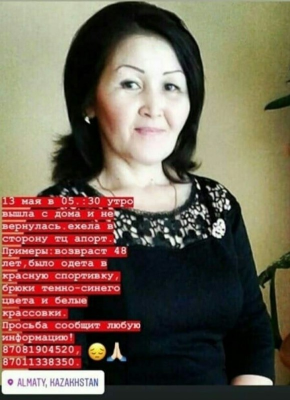 Алматыда 48 жастағы Дариға Әбілахимова хабар-ошарсыз кетті, - деп хабарлайды Tengrinews.kz тілшісі.