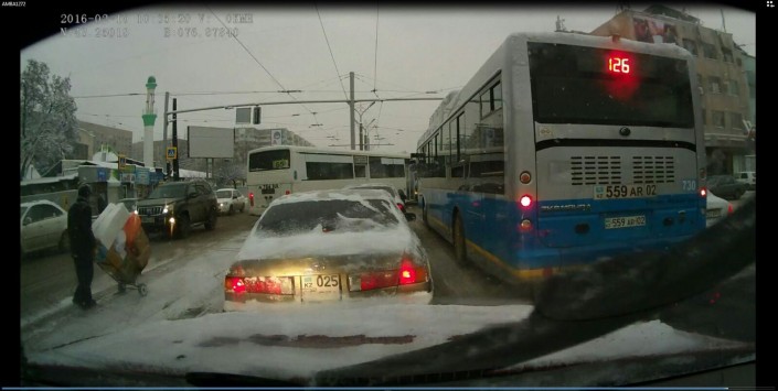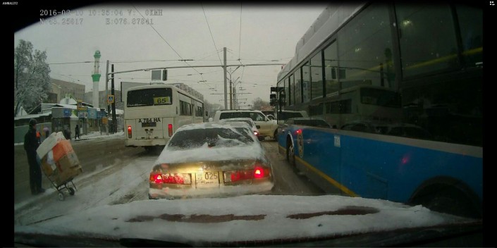 На этот раз на кадрах видеорегистратора запечатлено, как водитель автобуса №65 объехал пробку возле светофора по встречной полосе. По словам очевидца, инцидент произошел утром 10 февраля по улице Толе би перед улицей Баумана.