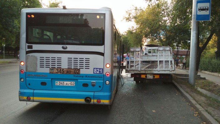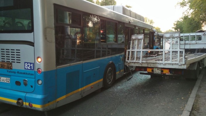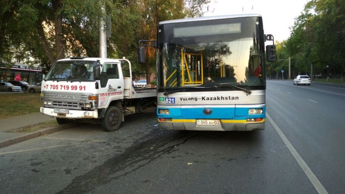 Автобус столкнулся с эвакуатором в Алматы