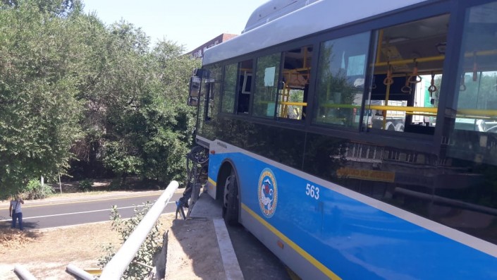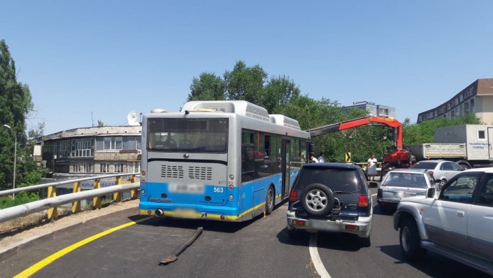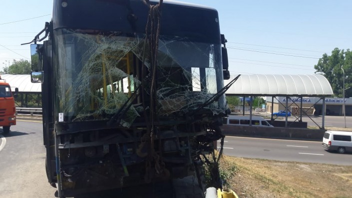 Автобус врезался в отбойник на мосту в Алматы