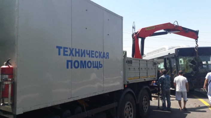 Автобус врезался в отбойник на мосту в Алматы Фото ©"Территория происшествий" на телеканале СТВ