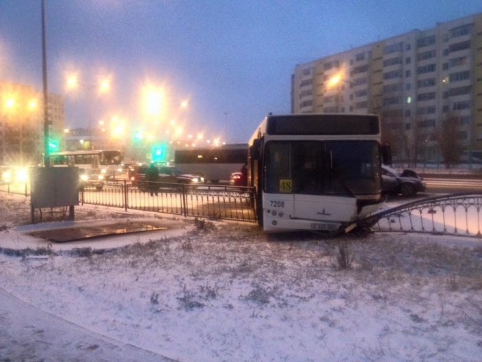 Как сообщили в управлении, ДТП с участием общественного транспорта произошло сегодня на пересечении улиц Мунайтпасова - Жумабаева около 7.28 утра.