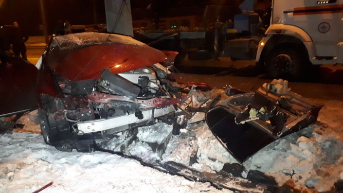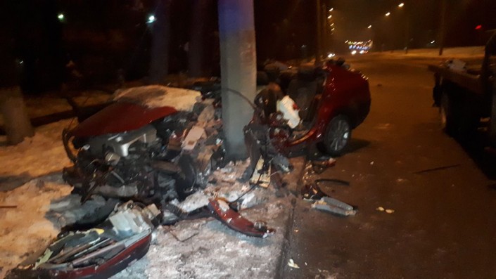 Со слов очевидцев, водитель, двигаясь в северном направлении на очень большой скорости, не справился с управлением и допустил наезд на бетонный фонарный столб. В результате водителя зажало в автомобиле.