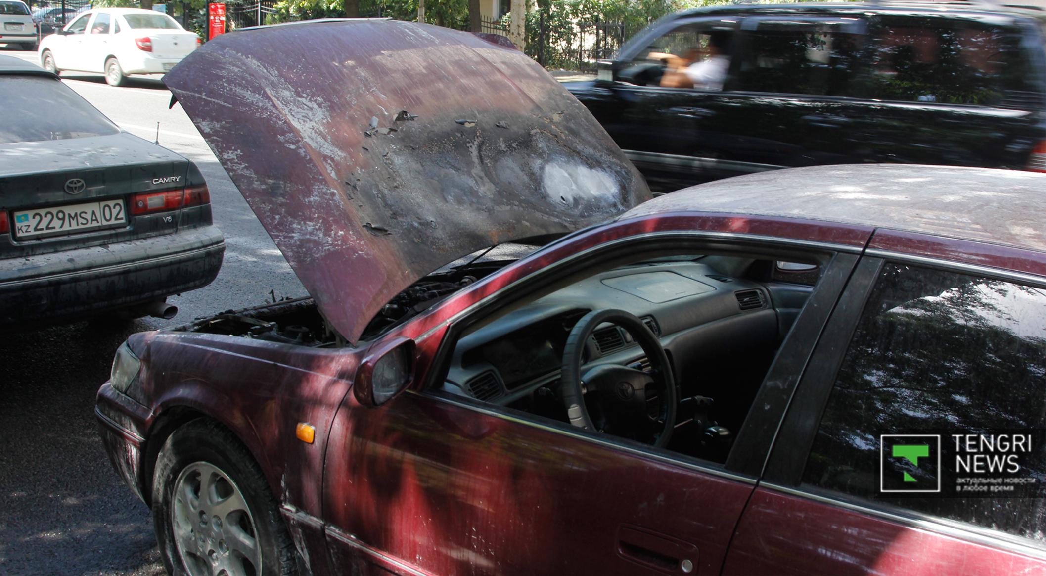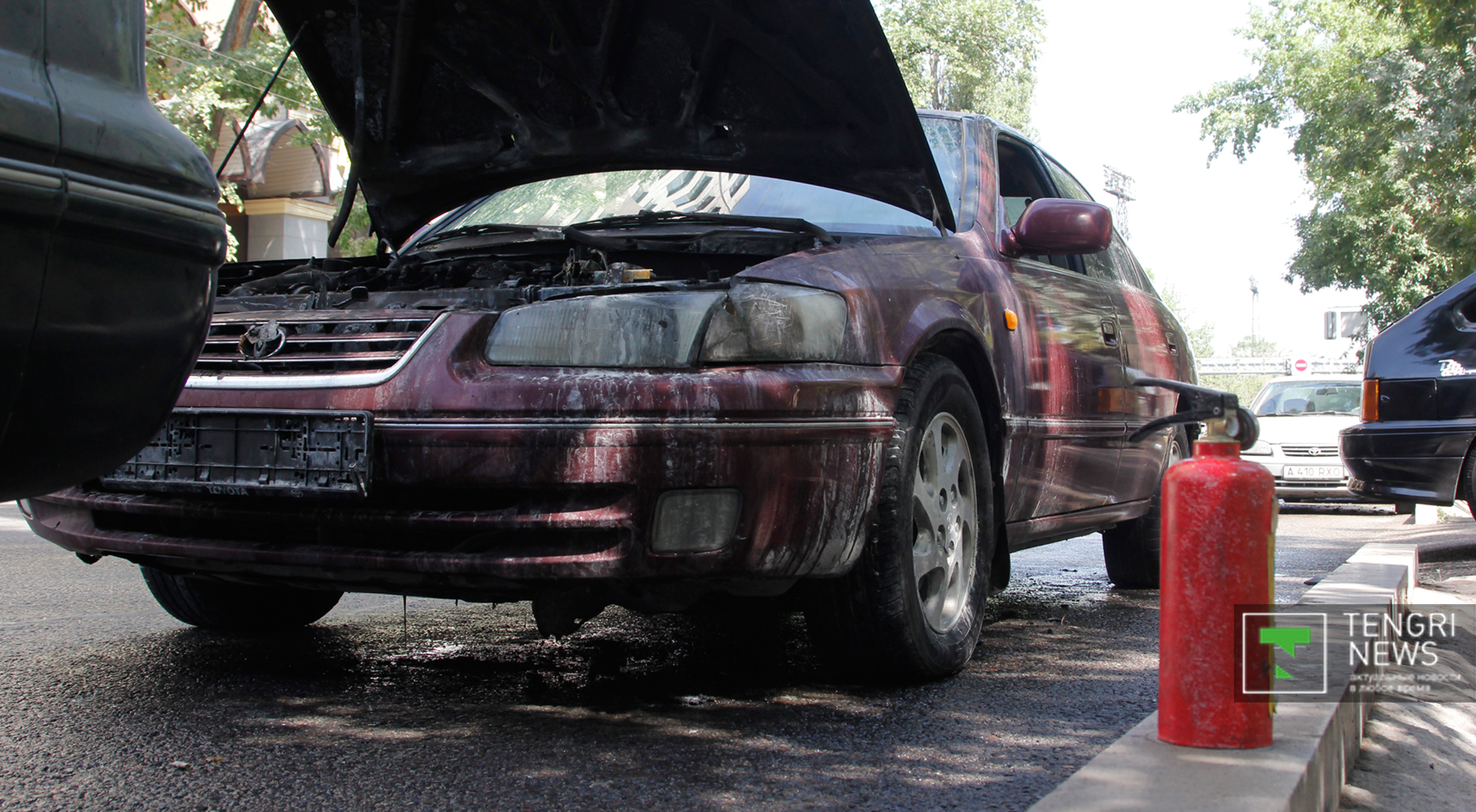 Инцидент произошел на улице Наурызбай батыра, выше улицы Шевченко. По словам водителя, возгорание произошло примерно в 9.30, когда он сидел в припаркованном авто. По его предположениям, произошло замыкание проводки. До приезда пожарных он пытался потушить автомобиль своими силами.