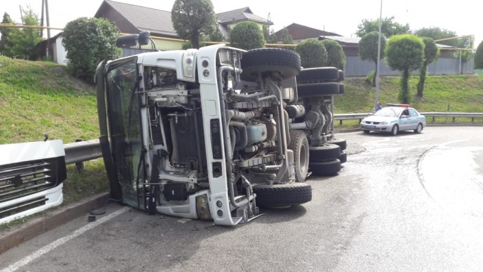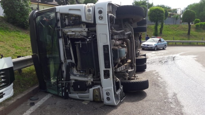 ДТП произошло на пресечении улиц Райымбека и Бокейханова, под мостом. Со слов водителя, якобы он двигался в южном направлении и на затяжном повороте было разлито масло на дороге. Он наехал на него, и так как машина была груженная бетоном, она опрокинулась на бок.