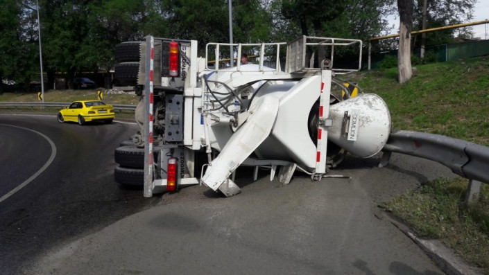Бетономешалка перевернулась в Алматы Фото программы "Территория происшествий"