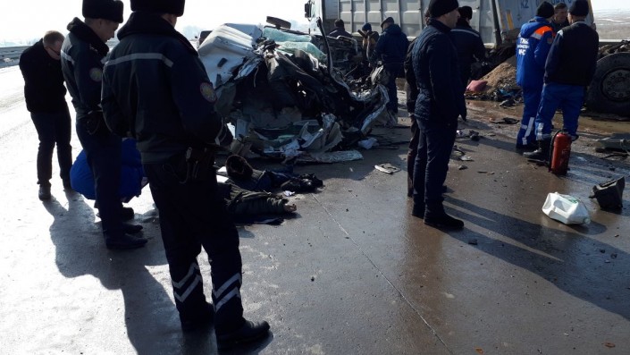 Грузовик-миксер с цементом, ехавший в сторону Алматы по трассе из Капшагая, на полном ходу врезался в припаркованную фуру, сообщает корреспондент программы "Территория происшествий" на телеканале СТВ.