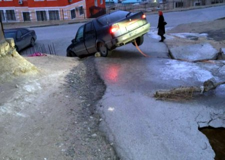 Часть дороги обвалилась под автомобилем в Актау Фото с сайта lada.kz