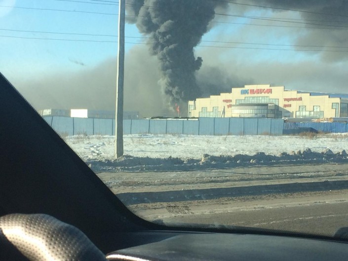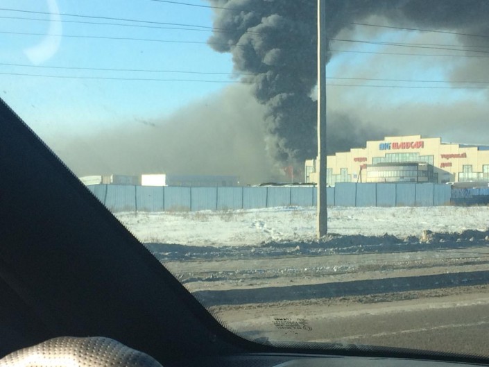 Пожар произошел в районе рынков в Астане, передает корреспондент Tengrinews.kz.