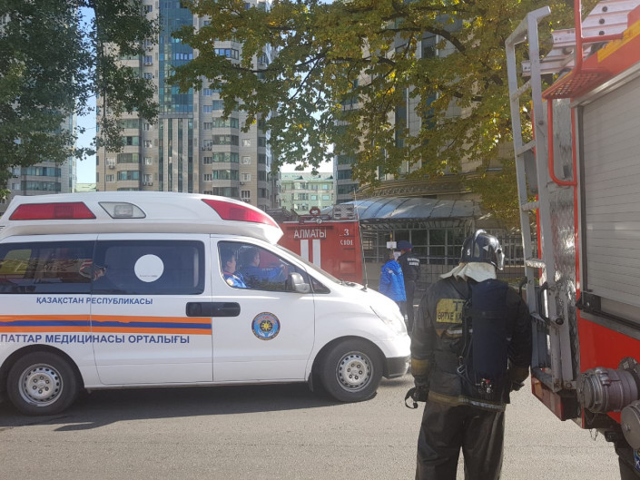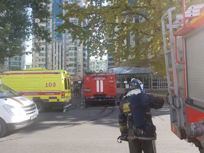 Позже в ДЧС проинформировали, что в 10.59 поступило сообщение от очевидцев о возгорании многоэтажного здания на пересечении улиц Шевченко и Муканова.