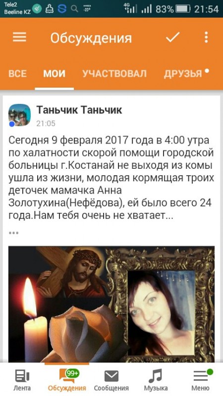 ЧП в Костанайской городской больнице - утром 9 февраля здесь скончалась 24-летняя мать троих детей Анна Золотухина. Читатели газеты "Костанайские новости" сообщили, что молодая женщина умерла, не выходя из комы, "по халатности врачей скорой помощи".