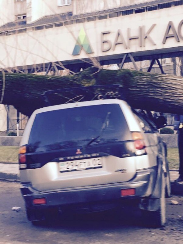 В Алматы дерево придавило автомобиль, передает корреспондент Tengrinews.kz. Инцидент произошел 15 марта во второй половине дня на улице Шевченко - между Наурызбай батыра и Желтоксан.