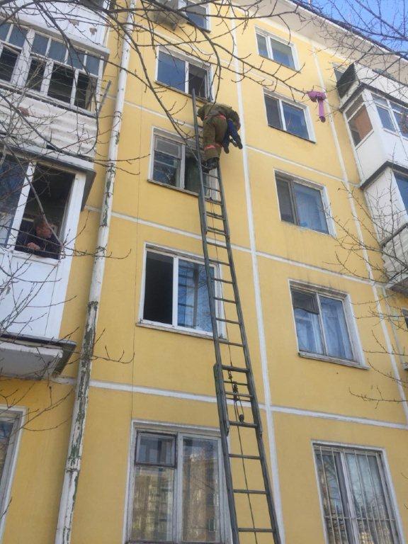 На месте спасательные службы установили, что квартире на втором этаже горят бытовая техника и домашние вещи. Пожарные с помощью трехколенной лестницы спасли 5 человек на четвертом этаже, в том числе двоих детей.