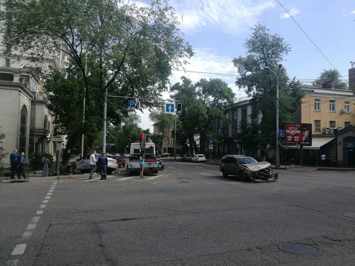 Со слов очевидцев, следуя по улице Курмангазы, Toyota на зеленый свет начала пересекать Желтоксан. В этот момент ей в бок врезался Nissan, который ехал вниз по односторонней улице. Toyota закрутило и отбросило на светофорный столб.