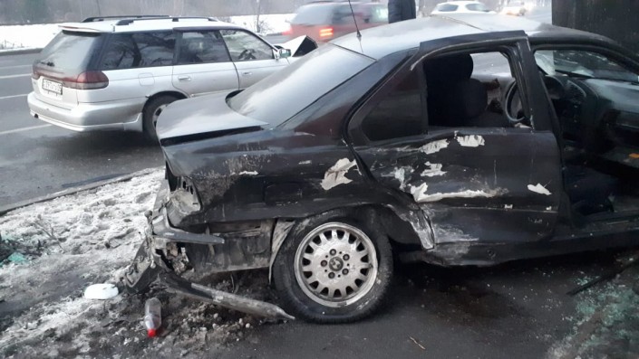 Авария произошла на пересечении проспекта Суюнбая и улицы Кожедуба. По словам очевидцев, автомобиль BMW ехал по проспекту Суюнбая в южном направлении. Проехав улицу Кожедуба, водитель не справился с рулевым управлением, машину занесло и выкинуло на полосу встречного движения. BMW столкнулся с машиной Subaru Legacy, которая в это время двигалась по проспекту Суюнбая в северном направлении. Машина врезалась в столб уличного освещения.