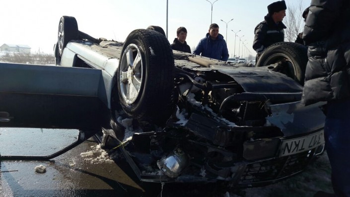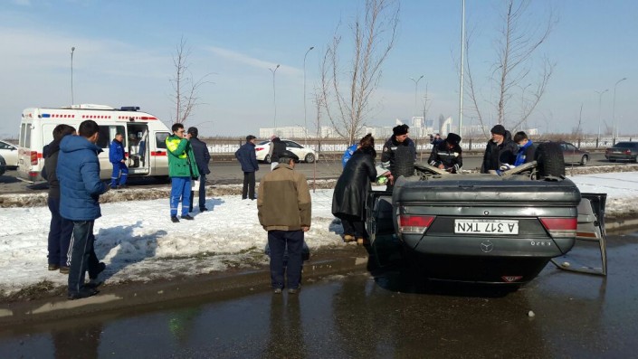 Со слов очевидцев, Nissan Micro двигался в западном направлении по проспекту Рыскулова. Внезапно в заднюю часть автомашины на полном ходу врезался Mersedes-Benz. От удара малолитражка несколько раз прокрутилась, после чего остановилась на дороге.