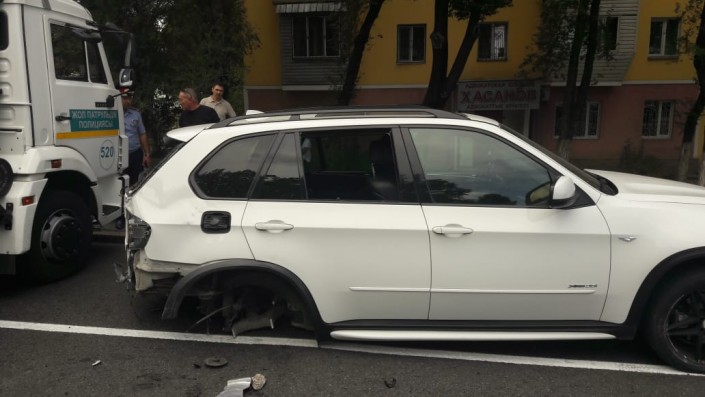 ДТП произошло на проспекте Желтоксан, недалеко от улицы Сатпаева. По словам очевидцев, BMW X5 ехал в южном направлении по проспекту Желтоксан. В этот момент в северном направлении по той же улице ехал автомобиль Toyota Highlander. Водитель собирался повернуть налево и задел BMW X5. Внедорожник в результате врезался в железный столб.