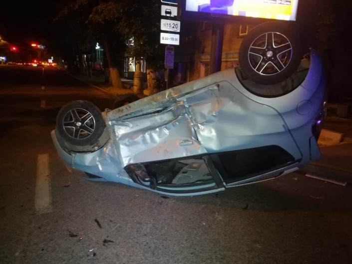 Авария произошла на пересечении улиц Кабанбай батыра и Пушкина. Со слов очевидцев, Daewoo двигалась по Пушкина в южном направлении. Водитель не заметил или проигнорировал знак "Уступи дорогу" и выехал на Кабанбай батыра. Водитель KIA не успел среагировать и на полном ходу врезался в Daewoo. От удара Daewoo опрокинулся на крышу.