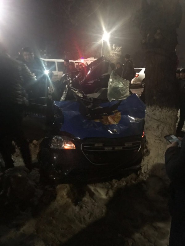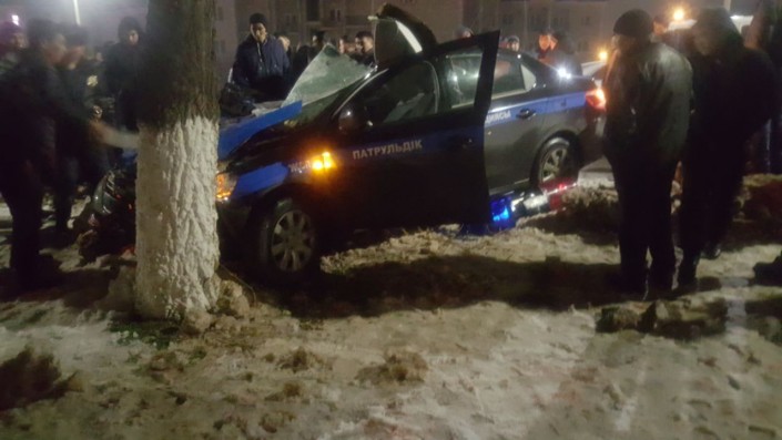 Фото разбитого в Таразе полицейского авто появилось в Сети