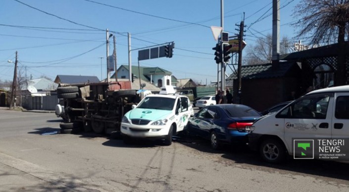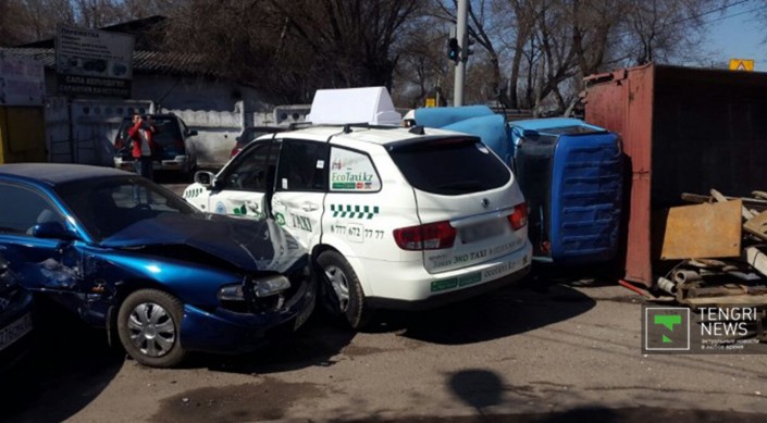 Водитель такси поворачивал налево по улице Бекмаханова, когда в него врезался грузовик ЗИЛ. После столкновения грузовик по инерции также врезался в стоявшие на светофоре автомобили Mazda, Hyundai Accent и Mitsubishi Delica. Причины ДТП пока неизвестны. Однако, как сообщают очевидцы, водитель грузовика ехал на запрещающий сигнал светофора.