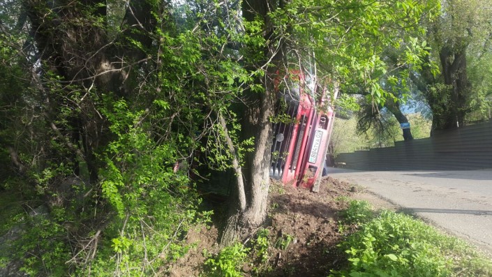 Грузовик с щебнем опрокинулся возле Кульджинской трассы