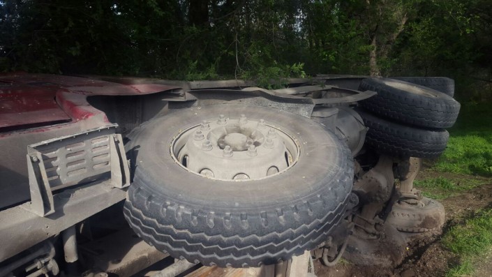 Авария случилась недалеко от кольца на пересечении с Бухтарминской улицей. По словам водителя, он не смог разъехаться с бетономешалкой, ехавшей ему навстречу. Избегая столкновения, он совершил резкий поворот, в результате чего автотранспорт опрокинулся. По словам водителя, бетономешалка покинула место ДТП. Запомнить номер или марку машины он не смог. Отмечается, что сейчас щебень собирают, а грузовик планируют поставить на колеса, чтобы увезти.