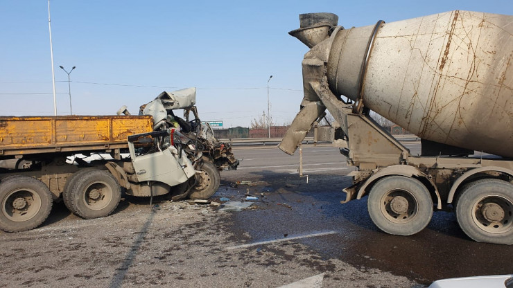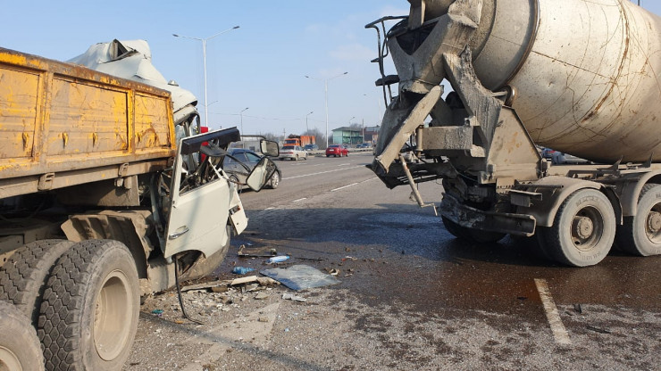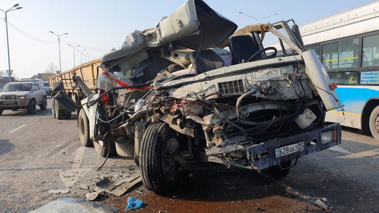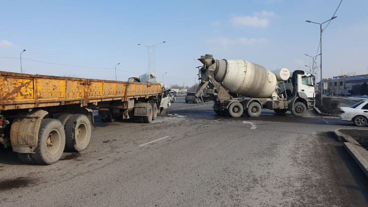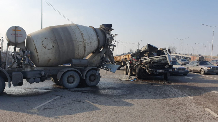 Авария произошла днем 29 января на проспекте Райымбека. По словам водителей, грузовик-бетономешалка двигался в восточном направлении и, не доезжая до улицы Ашимова, решил повернуть направо. Однако водитель не вписался в поворот и дал задний ход. В это время также в восточном направлении двигался другой грузовик, водитель которого не успел среагировать и допустил столкновение.