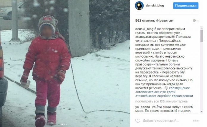 Ранее снимки привязанной веревкой к столбу девочки-попрошайки появились в Instagram. Как рассказал автор, фото было сделано в районе рынка "Бухар-Жырау", вероятнее всего, 4 апреля.