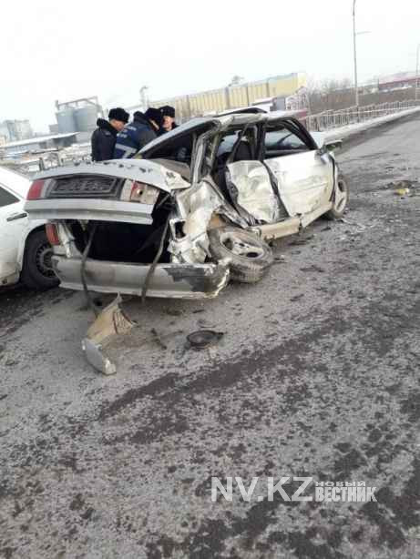 "Водитель легковой автомашины "Ауди", направляясь в сторону кондитерской фабрики, выехал на встречную полосу и совершил столкновение с  машиной "Мерседес-Бенц" и далее столкнулся со служебной автомашиной УАЗ", - сообщили в пресс-службе ДП Карагандинской области.