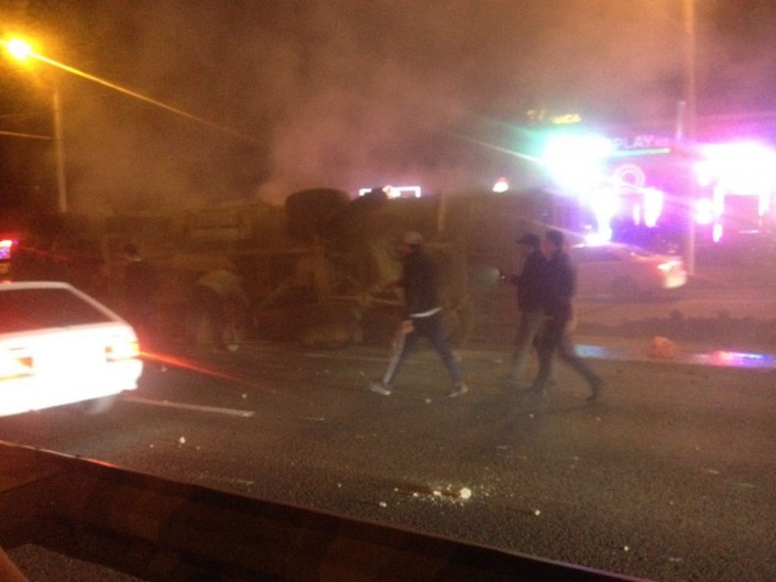 Очевидец происшествия рассказала Tengrinews.kz, что в момент аварии находилась в доме, который расположен неподалеку. "Я укладывала спать малыша, услышала сильные удары, потом сильный скрежет по асфальту. Позвала мужа, мы подошли к окну и увидели дым. Потом спустились вниз, увидели там перевернутый грузовик. Дальше были две перевернутые легковые машины. Это было в 22.07", - сообщила она.