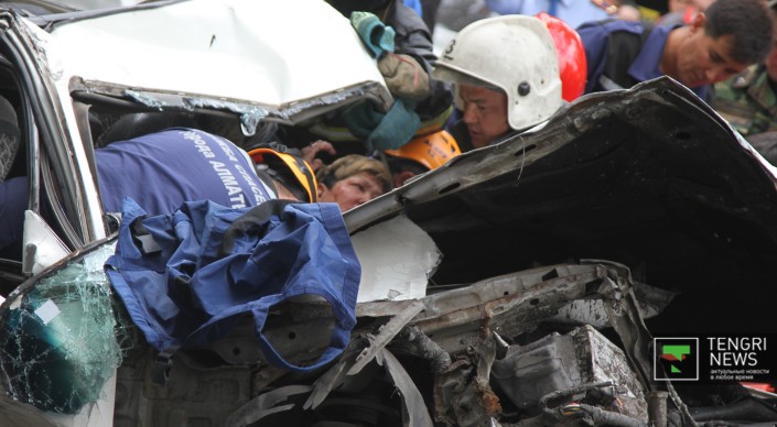 Авария произошла на пересечении улиц Байтурсынова и Карасай батыра. Обстоятельства ДТП еще неизвестны, на месте - несколько перевернутых легковых машин, некоторые из них полностью смяты. Помимо этого, участником аварии стал трамвай, который двигался вниз по Байтурсынова. Дорога полностью заблокирована. Прохожие и другие автомобилисты пытаются разобрать завалы.
